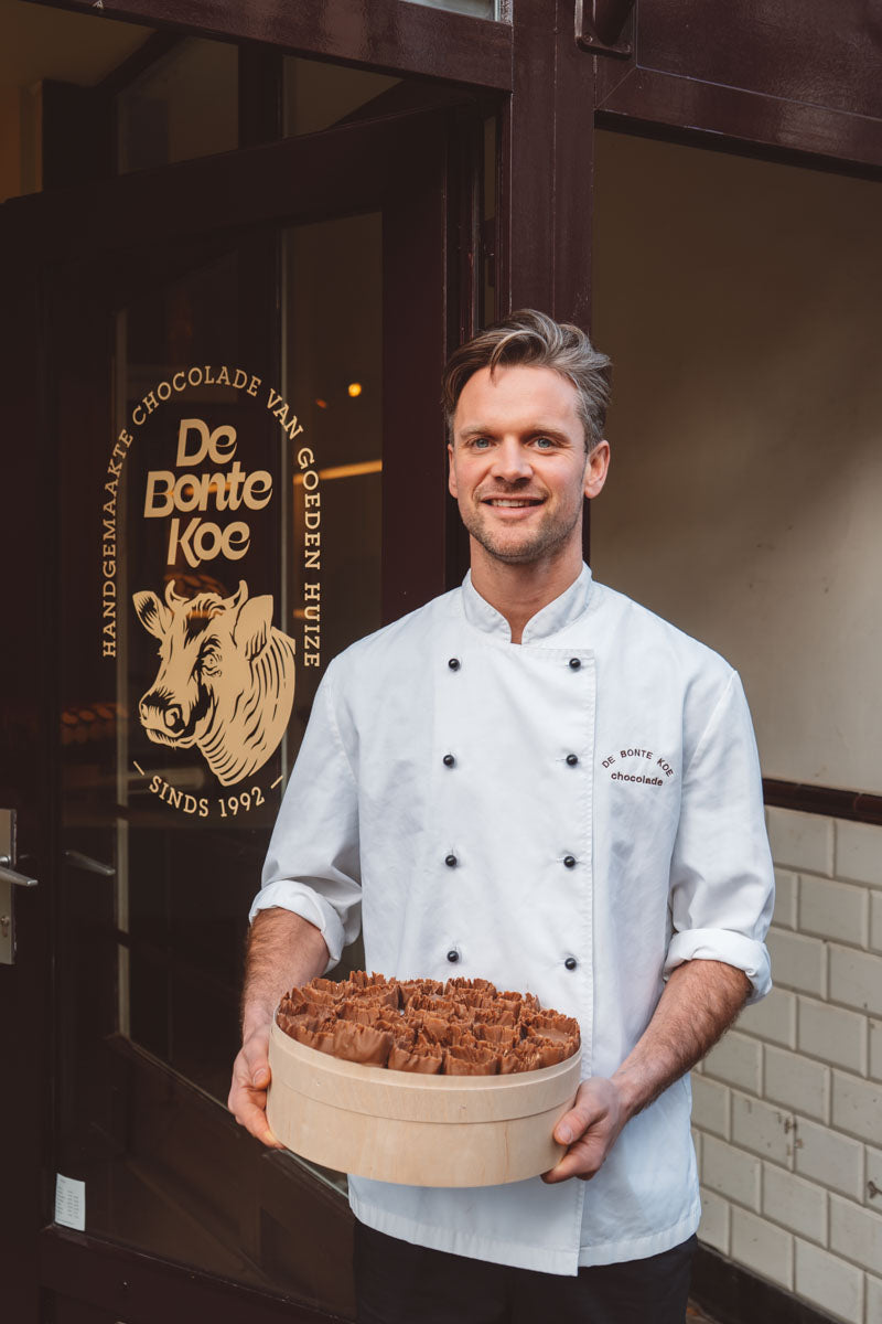 De reep is geïnspireerd op een populaire creatie uit Dubai, waar de trend in 2021 begon en inmiddels wereldwijd viral ging. Bij De Bonte Koe maken we onze eigen duurzame, handgemaakte versie van deze iconische reep.