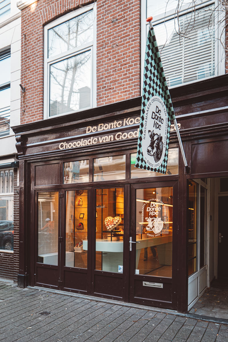 Het hart, de productie van De Bonte Koe, is gevestigd in een drietal oude jeneverdistilleerderijen in Schiedam. Gluurt u naar binnen vanaf de Hoogstraat dan ziet u onze chocolatiers met opgestroopte mouwen chocolade maken. In de winkel aan de Lange Haven proeft u chocolade op fijnproeversniveau. Daarnaast hebben we vier winkels in Rotterdam en Den Haag en een chocolade automatiek in Schiedam waar 24/7 chocolade gekocht kan worden. Kom langs en hap toe.