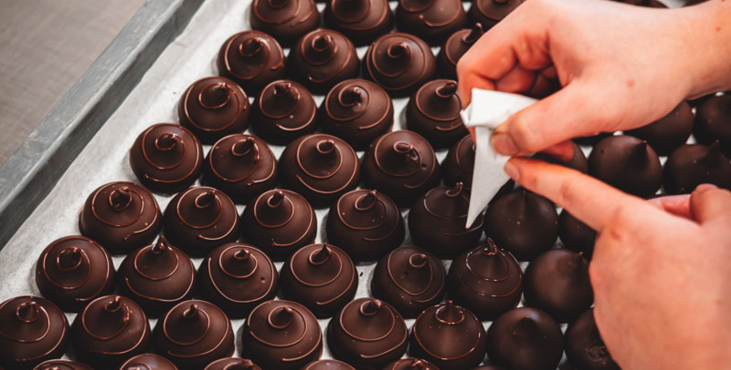 Onze bonbons, bouchées en truffels worden nog altijd volgens de originele receptuur met de hand gemaakt. Voor de chocolade zelf gebruiken we onder meer biologisch gecertificeerde cacaobonen die we vermengen met biologische rietsuiker en biologische koe- of rijstmelk. De chocolade wordt vervolgens afhankelijk van de vorm of toepassing met de hand in mallen gegoten, gevormd, gedipt of opgespoten tot bonbon, letter, reep of een van onze andere heerlijke chocoladeproducten.