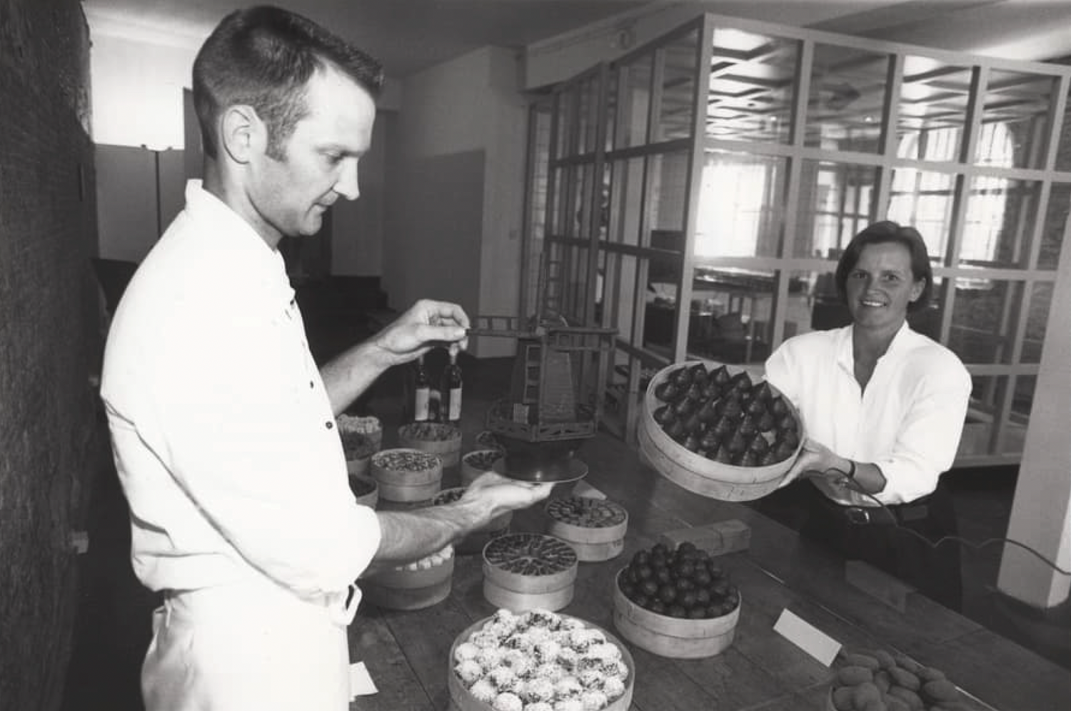 De Bonte Koe is een ambachtelijk familiebedrijf, in 1992 opgericht door Carmel Klein Kelly en haar zwager Cees Klein. Ons chocolademerk dankt haar naam aan de roodbonte koeien die vroeger bij Cees’ ooms in de wei stonden in Schiedam - Kethel en waar hij een groot deel van zijn jeugd doorbracht. Deze koeien werden gevoerd met een restproduct uit Schiedamse jeneverdistilleerderijen. De Bonte Koe vestigde zich in een van deze distilleerderijen waar de jeneverdampen plaatsmaakten voor cacaogeuren. Ruim dertig jaar later is De Bonte Koe een begrip voor handgemaakte chocolade in Nederland. Inmiddels heeft de nieuwe generatie het stokje overgenomen.